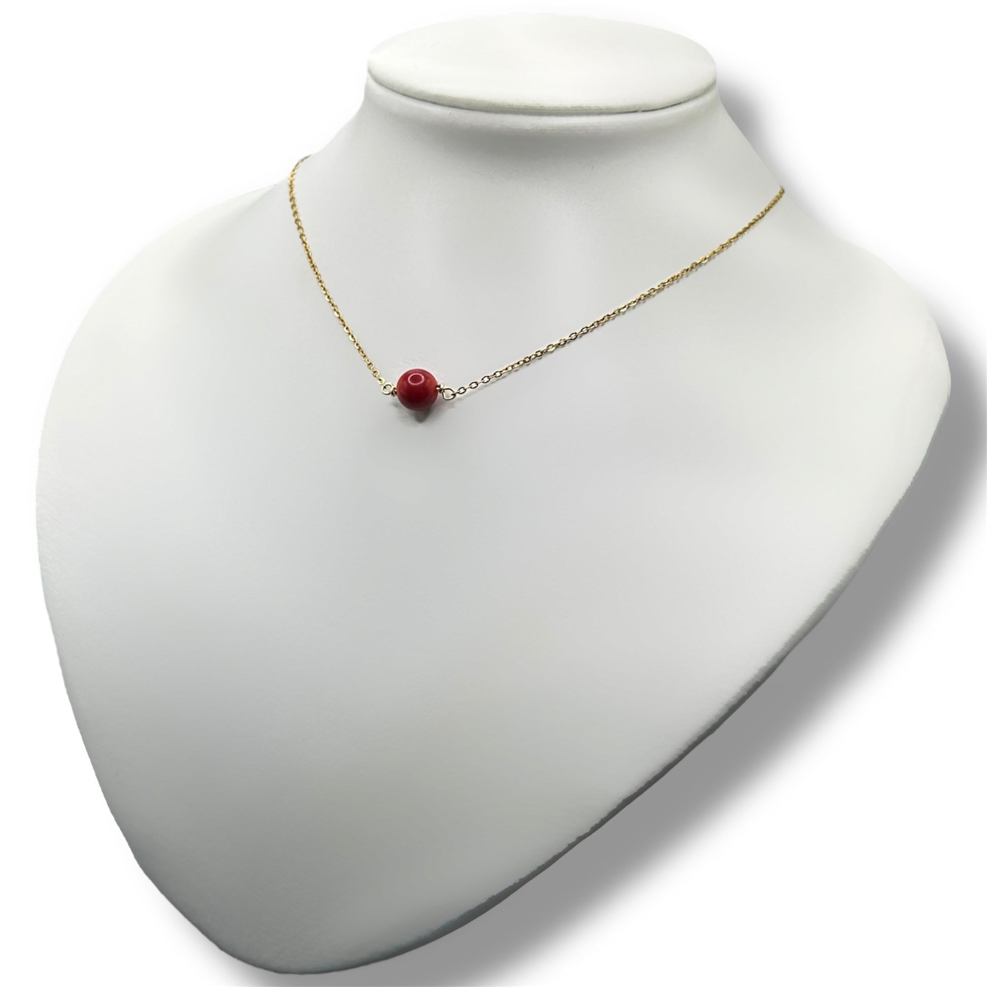 ✨ Pendentif : Perle de corail bambou (8 mm), tressée à la main avec fil de cuivre anti-ternissement