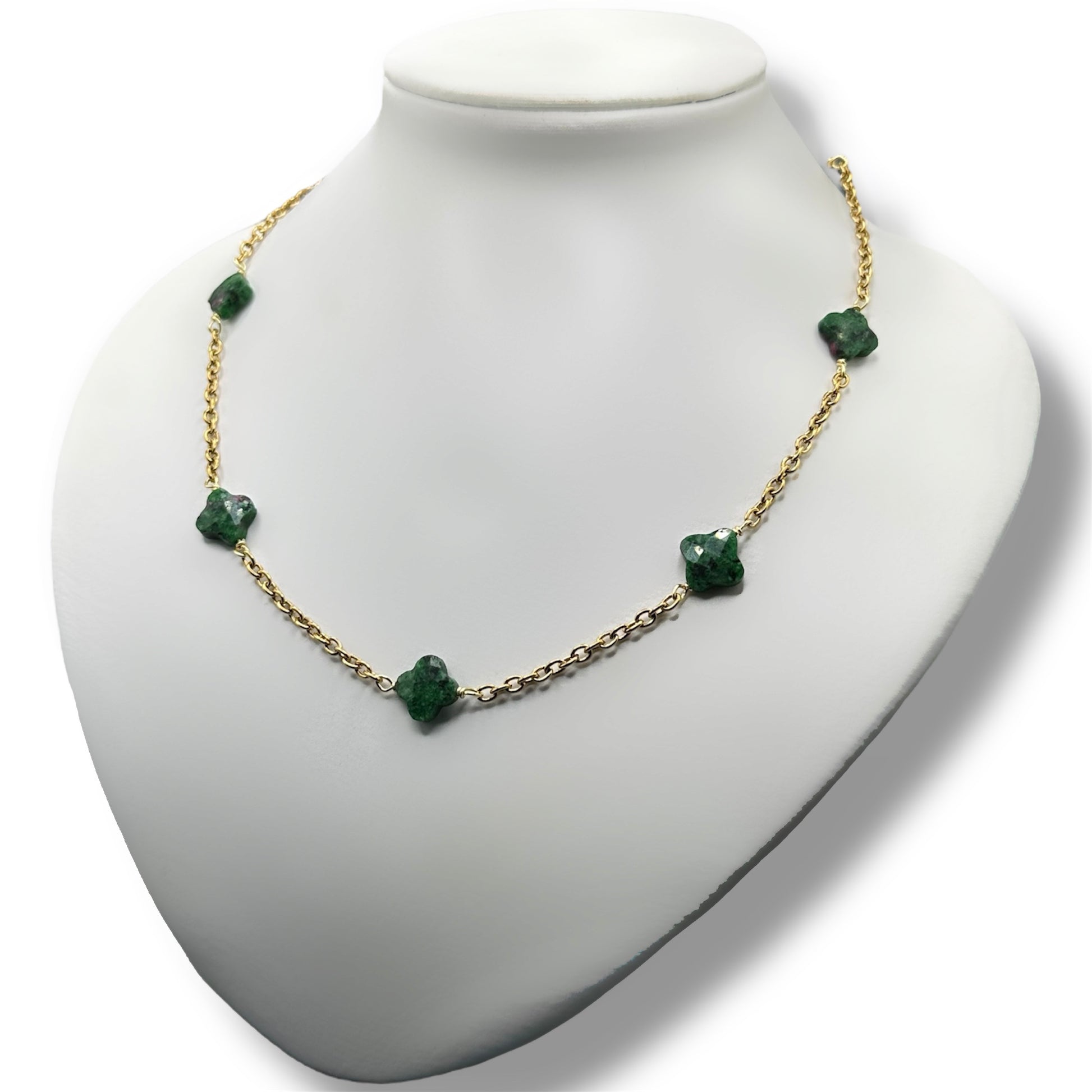 Collier Francesca – Trèfles en Rubis Zoïsite